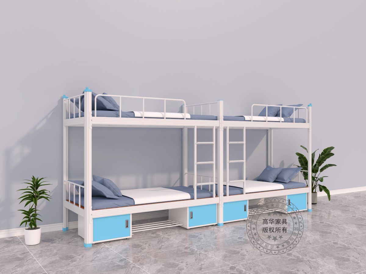 廣東高華家具雙層鐵床廠家批發的東莞雙層鐵床-GH-S-103款式新穎,功能實用,采用環保0甲醛烤漆,無論悶熱潮濕都恍然如新。 工藝設計上,采用先進的卡口式連接,這種連接的優點在于承重性強,穩固性好,上下床時非常平穩,不易搖晃,安全舒適,整張床可承重500公斤,經久耐用且十年質保,可以適應各類宿舍。